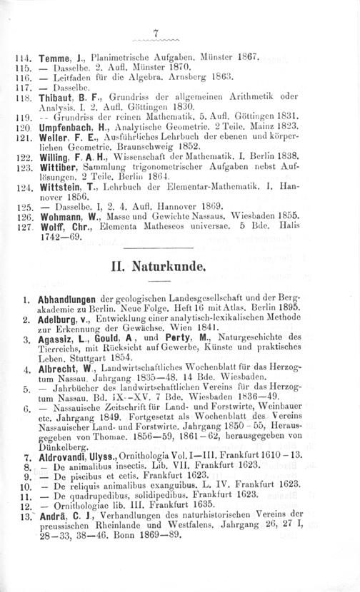 Katalog der Bibliothek des Königlichen Gymnasiums zu Weilburg : 3. Teil. Mathematik und Naturwissenschaften