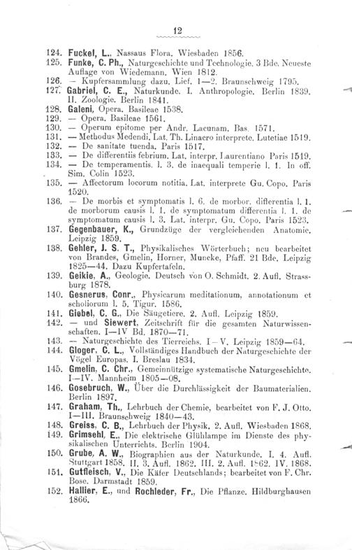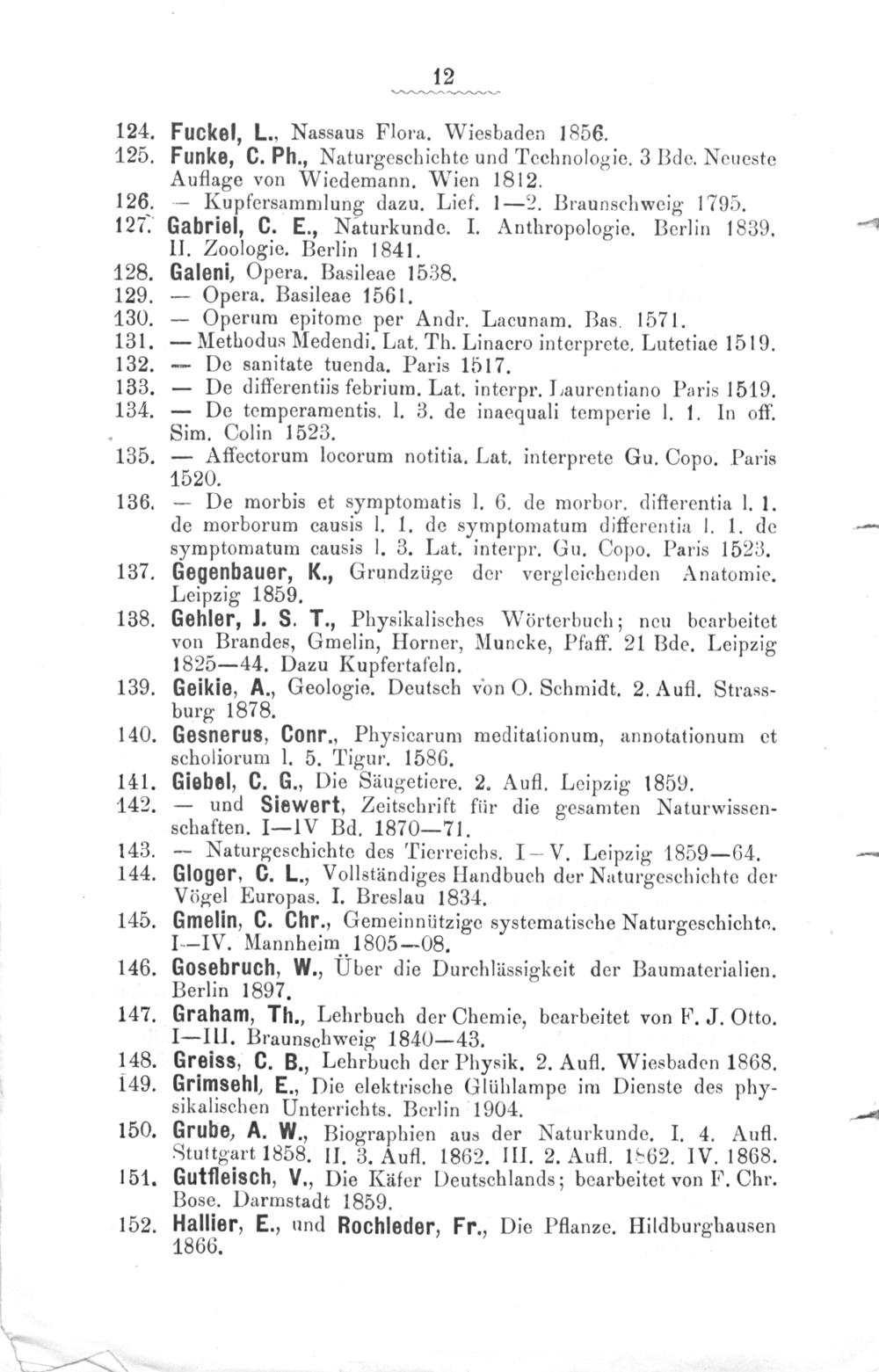 Katalog der Bibliothek des Königlichen Gymnasiums zu Weilburg : 3. Teil. Mathematik und Naturwissenschaften