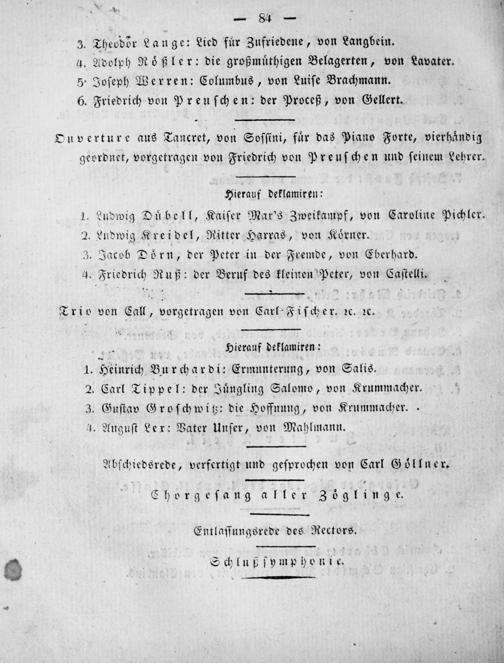 Ankündigung der öffentlichen Schulprüfung des Herzoglich-Nassauischen Pädagogiums zu Wiesbaden