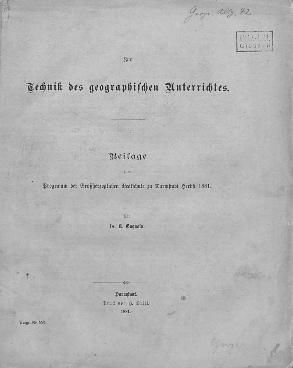 Zur Technik des geographischen Unterrichtes / von K. Gaquoin
