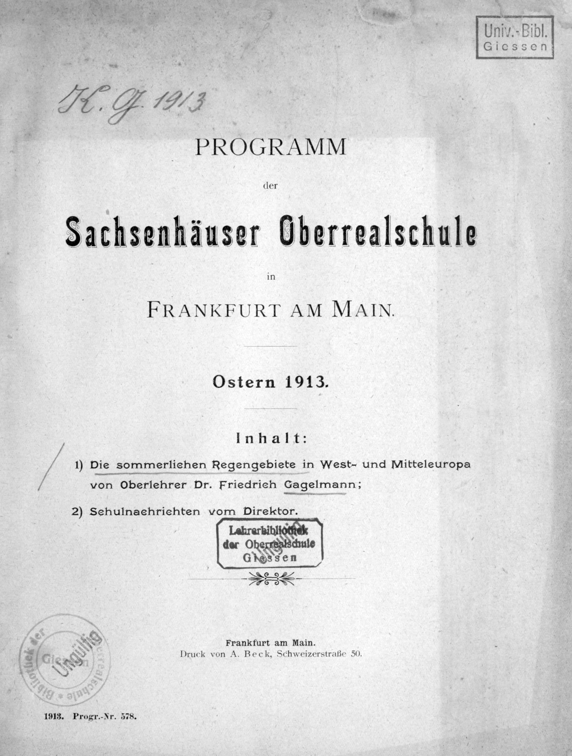 Programm der Sachsenhäuser Oberrealschule in Frankfurt am Main