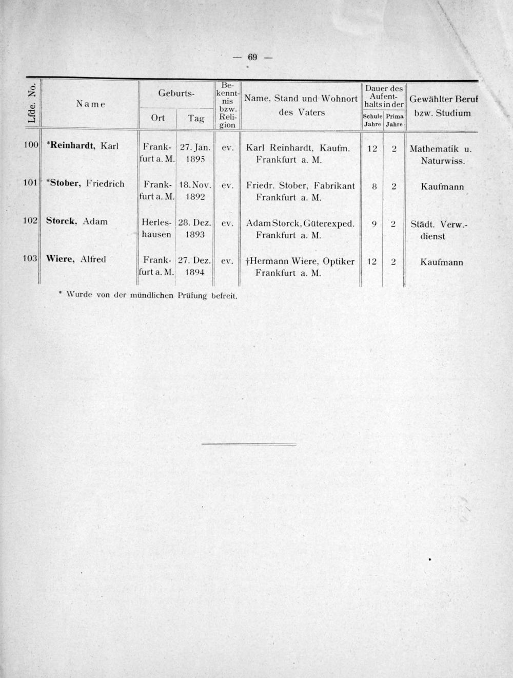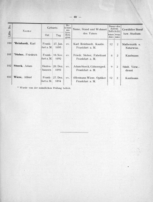 Programm der Sachsenhäuser Oberrealschule in Frankfurt am Main
