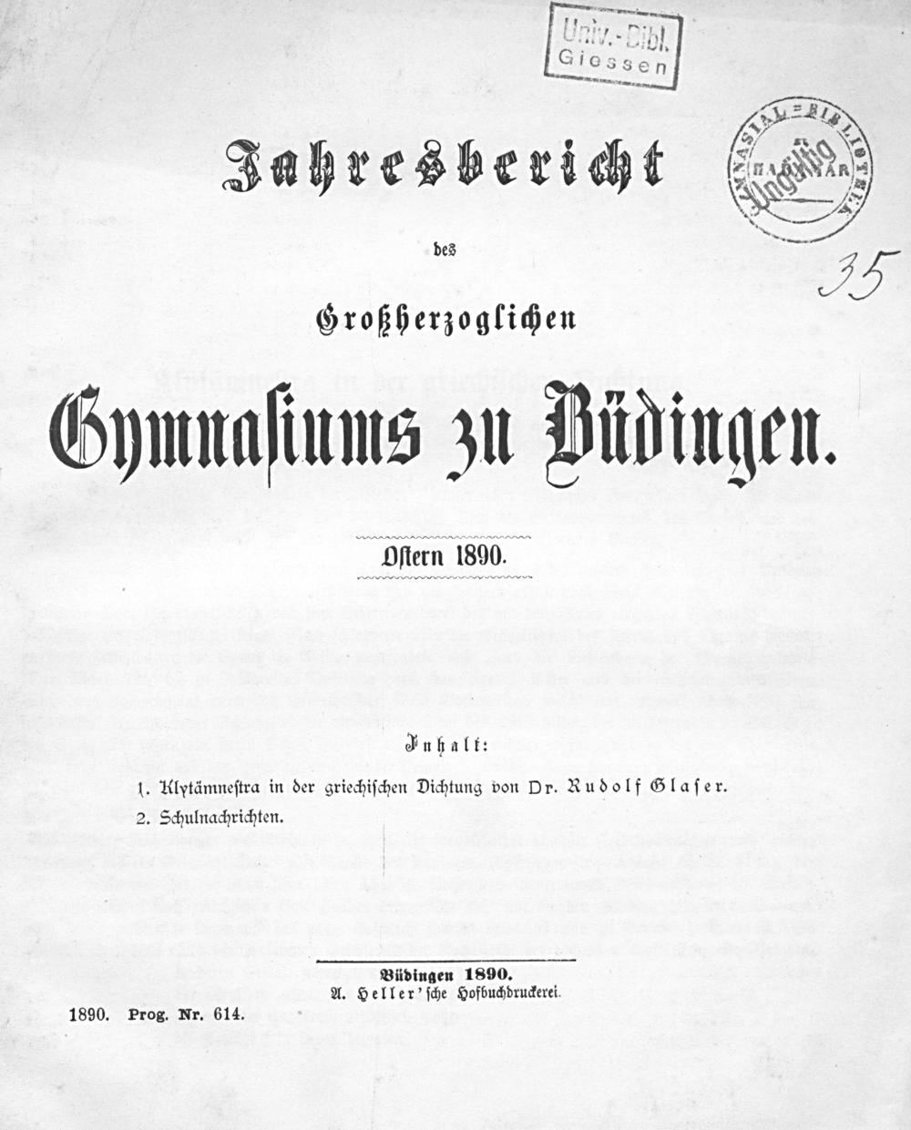 Jahresbericht des Großherzoglichen Gymnasiums zu Büdingen