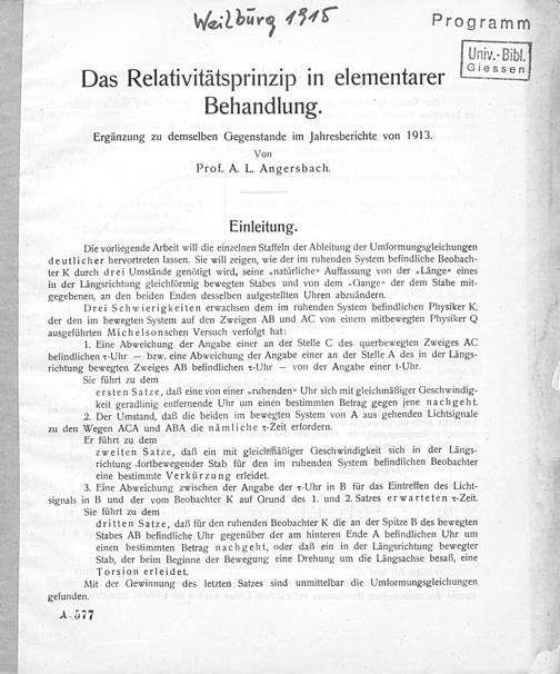 Das Relativitätsprinzip in elementarer Behandlung : Schluß