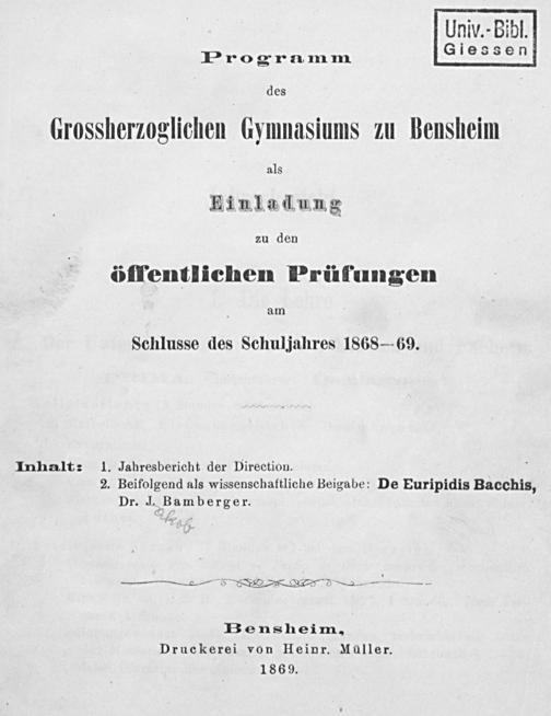 Jahresbericht des Gymnasiums zu Bensheim