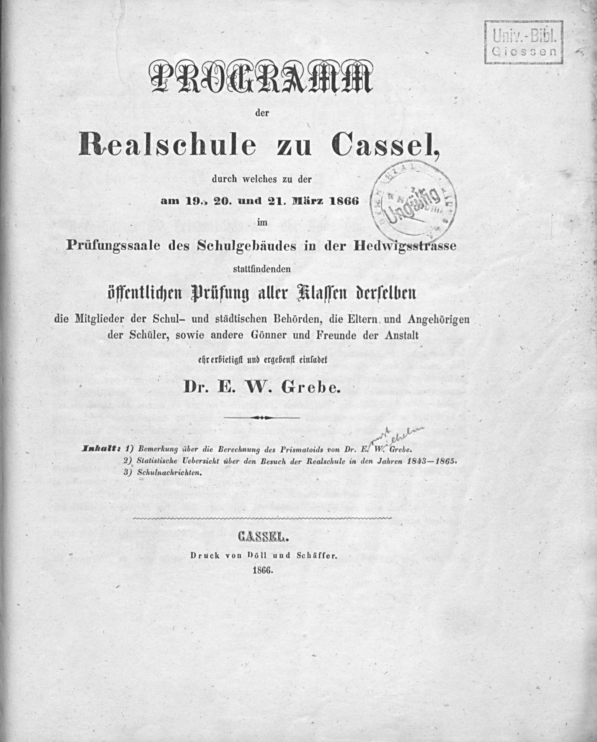 Programm der Realschule zu Cassel für das Schuljahr ...