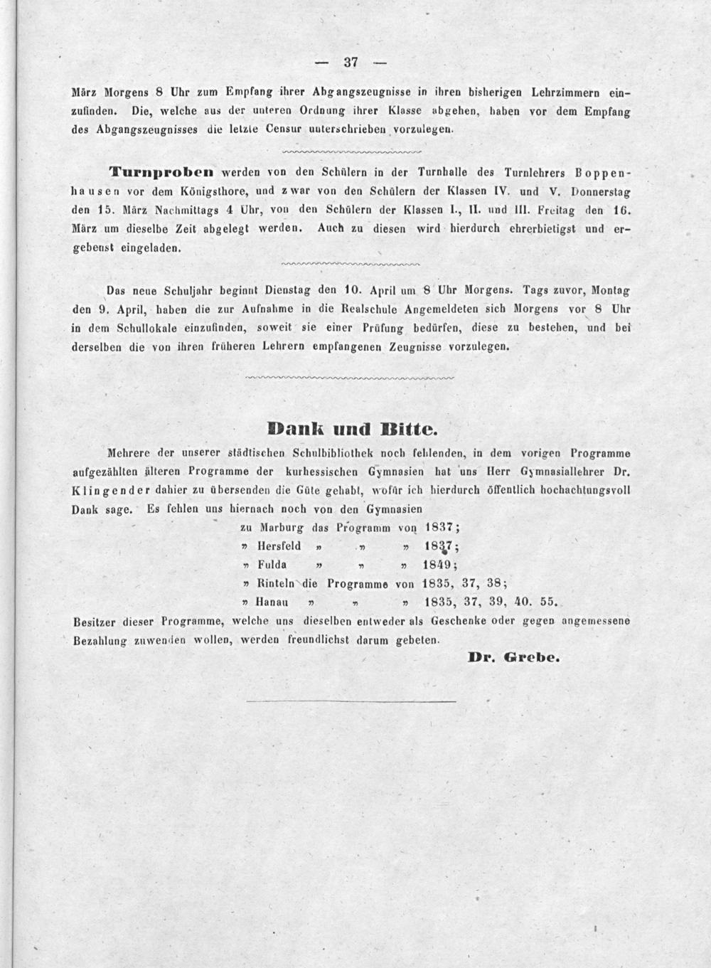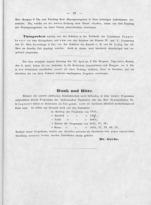 Programm der Realschule zu Cassel für das Schuljahr ...