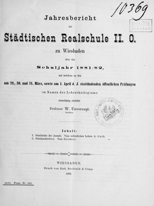 Jahresbericht der Städtischen Realschule zu Wiesbaden
