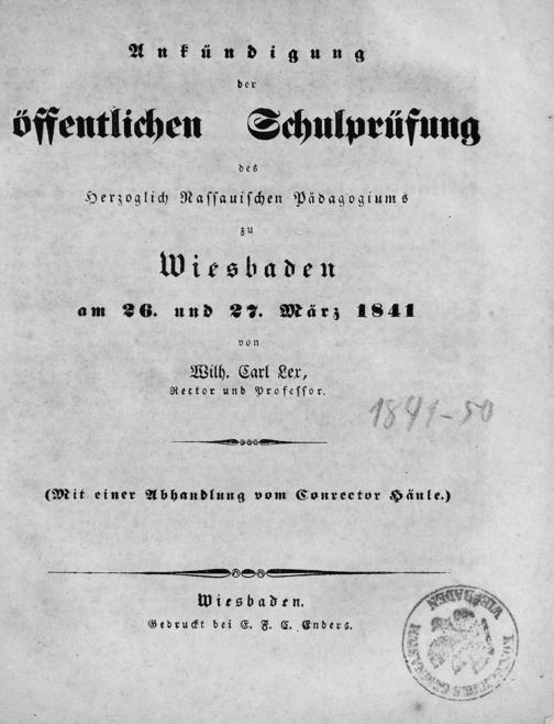 Ankündigung der öffentlichen Schulprüfung des Herzoglich-Nassauischen Pädagogiums zu Wiesbaden