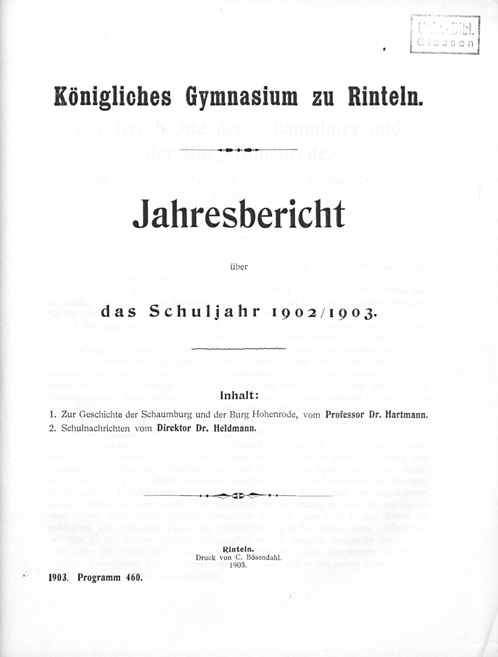 Zur Geschichte der Schaumburg und der Burg Hohenrode : Festrede am Allerhöchsten Geburtstag Sr. Majestät des Kaisers und Königs / geh. von Hartmann