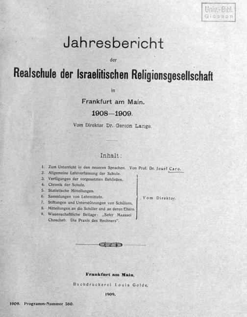 Jahresbericht der Realschule der Israelitischen Religions-Gesellschaft in Frankfurt am Main