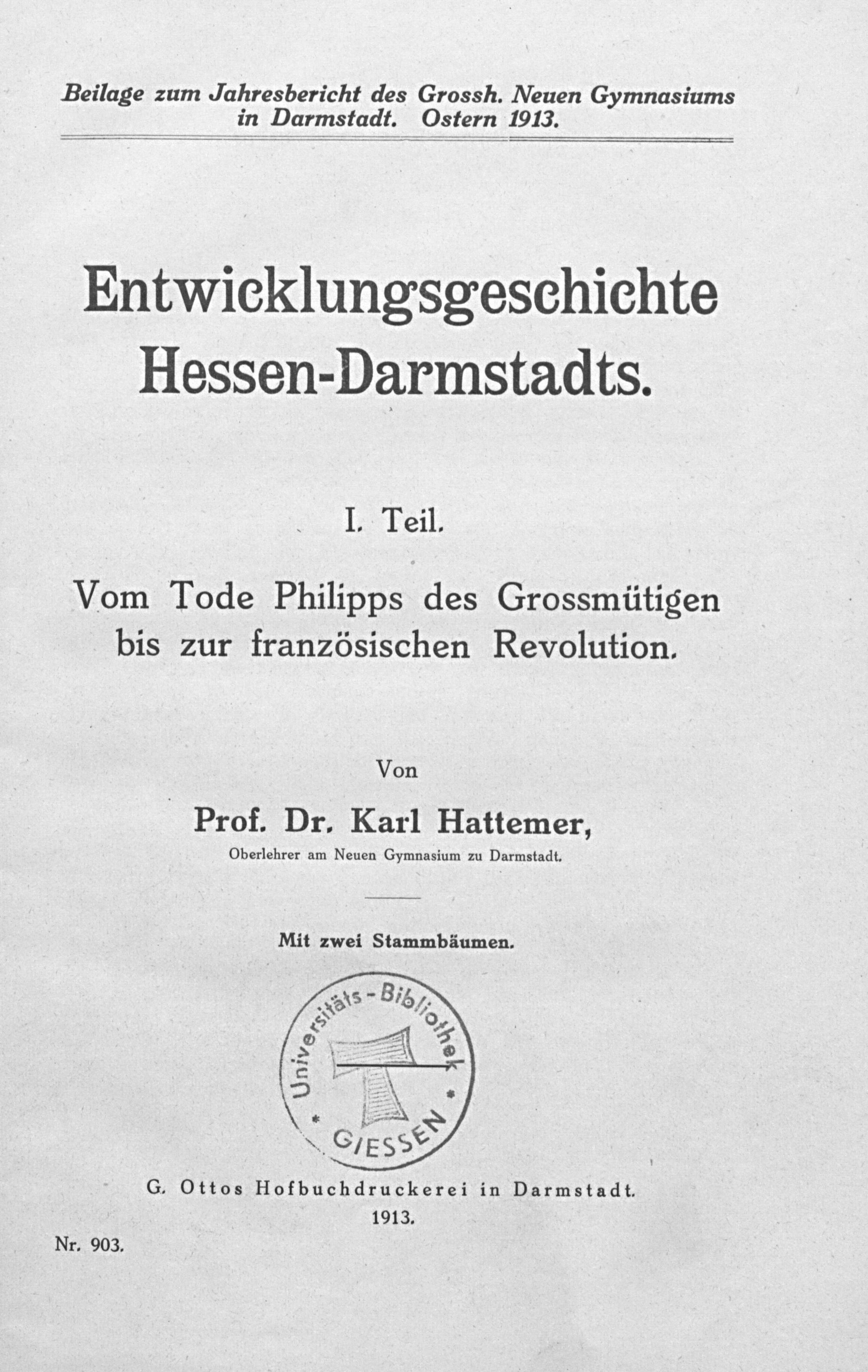 Entwicklungsgeschichte Hessen-Darmstadts. 1. Teil. Vom Tode Philipps des Großmütigen bis zur französischen Revolution