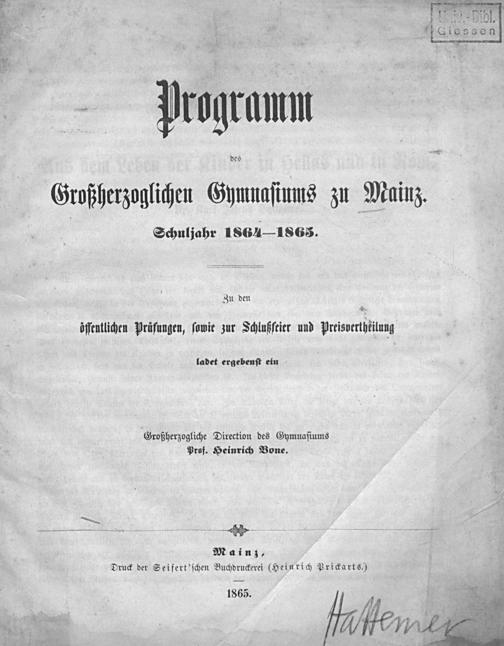 Programm des Großherzoglichen Gymnasiums zu Mainz