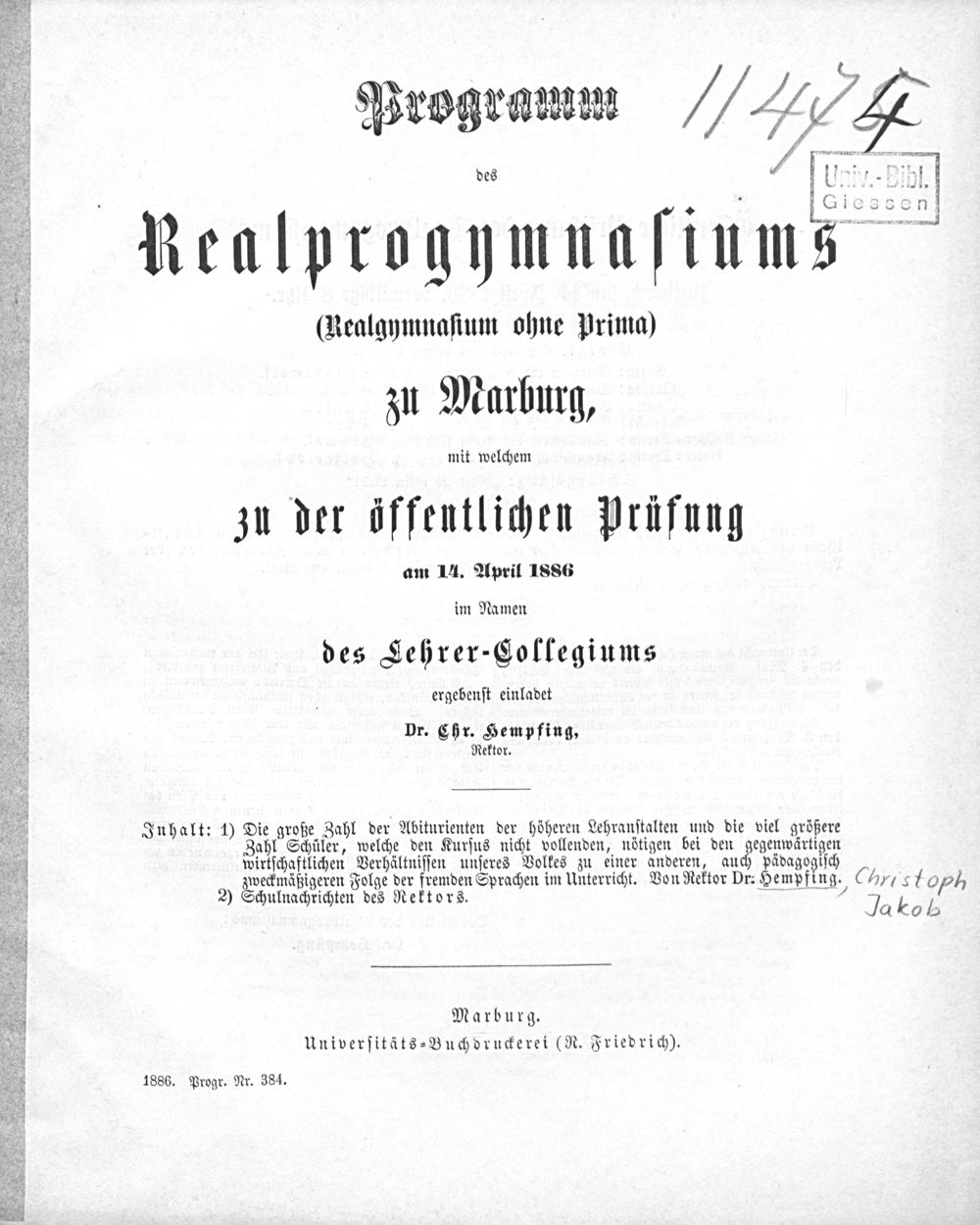 Die große Zahl der Abiturienten der höheren Lehranstalten und die noch viel größere Zahl von Schülern, welche den Schulkursus nicht vollenden, nötigen bei den gegenwärtigen wirtschaftlichen Verhältnissen unseres Volkes zu einer anderen, auch pädagogisch zweckmäßigeren Folge der fremden Sprachen im Unterricht / von Hempfing