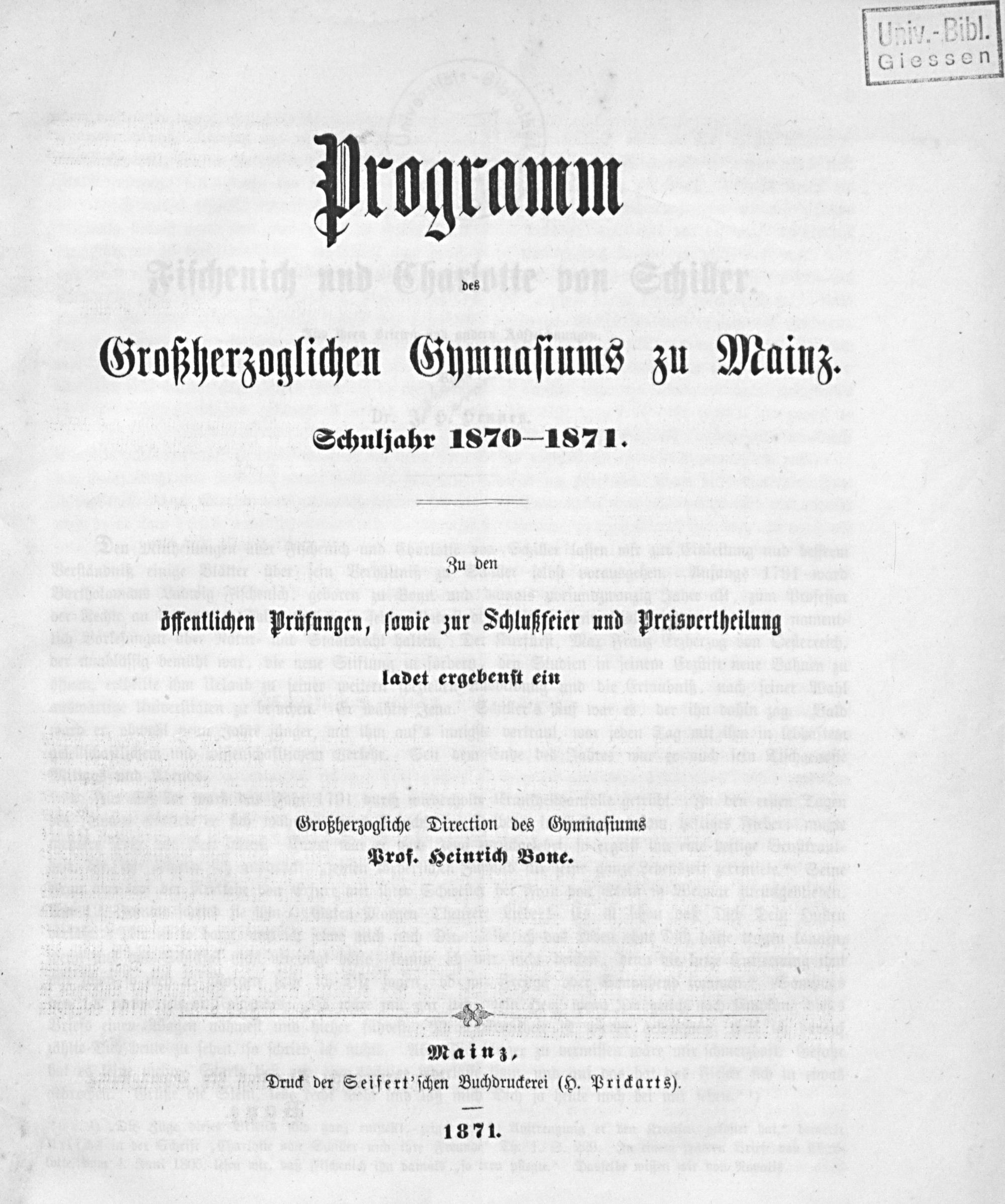 Programm des Großherzoglichen Gymnasiums zu Mainz