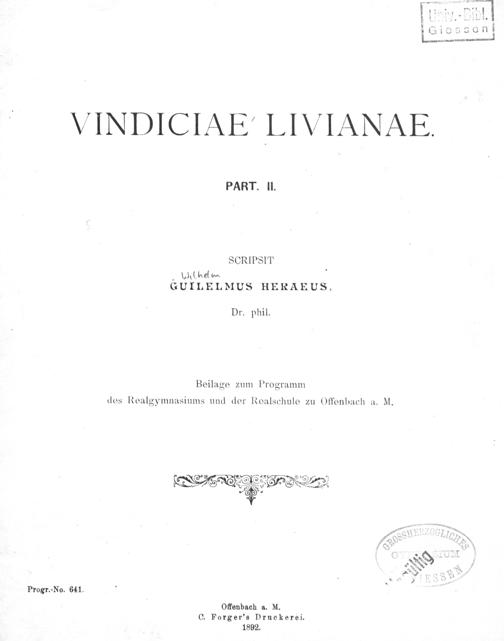 Vindiciae Livianae : Part. II / scripsit Guilelmus Heraeus