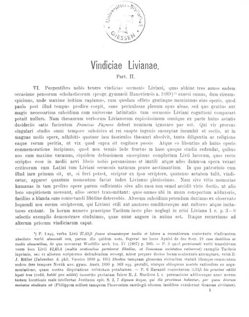 Vindiciae Livianae : Part. II / scripsit Guilelmus Heraeus