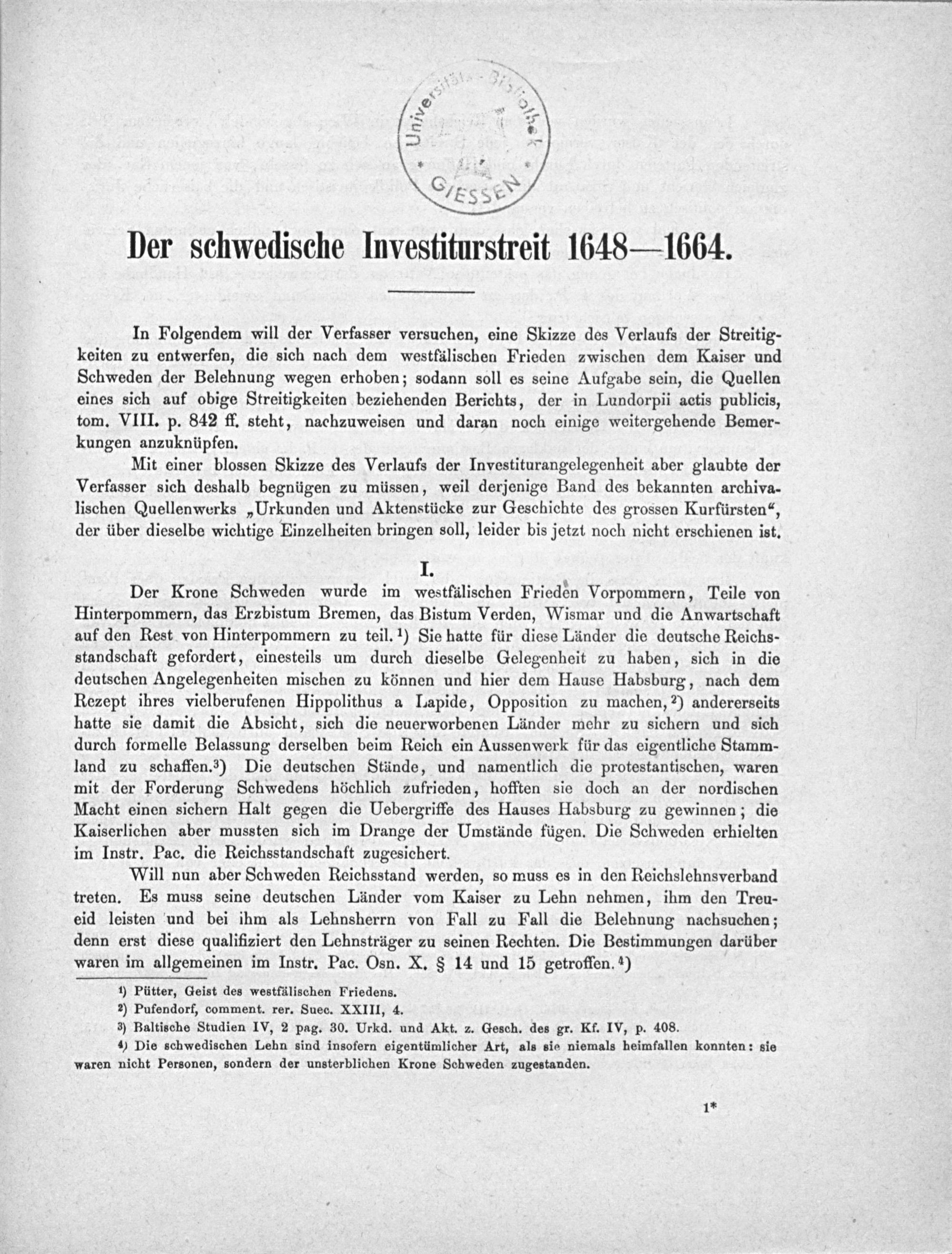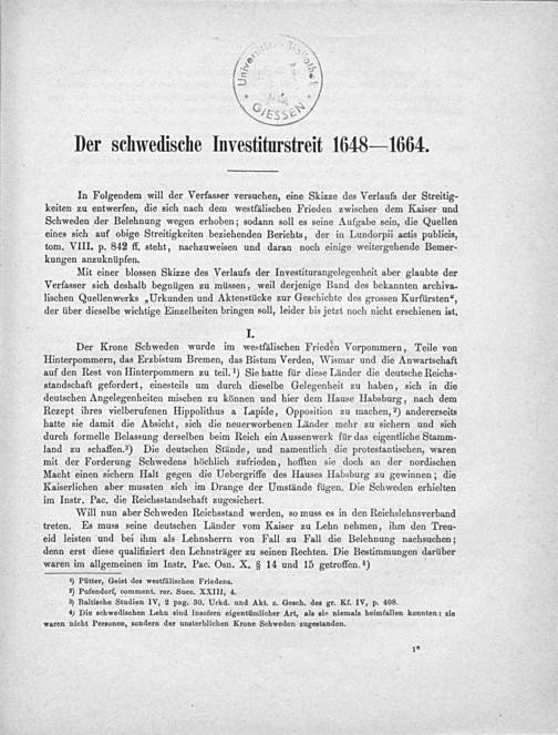Der schwedische Investiturstreit 1648-1664 / von Heyne