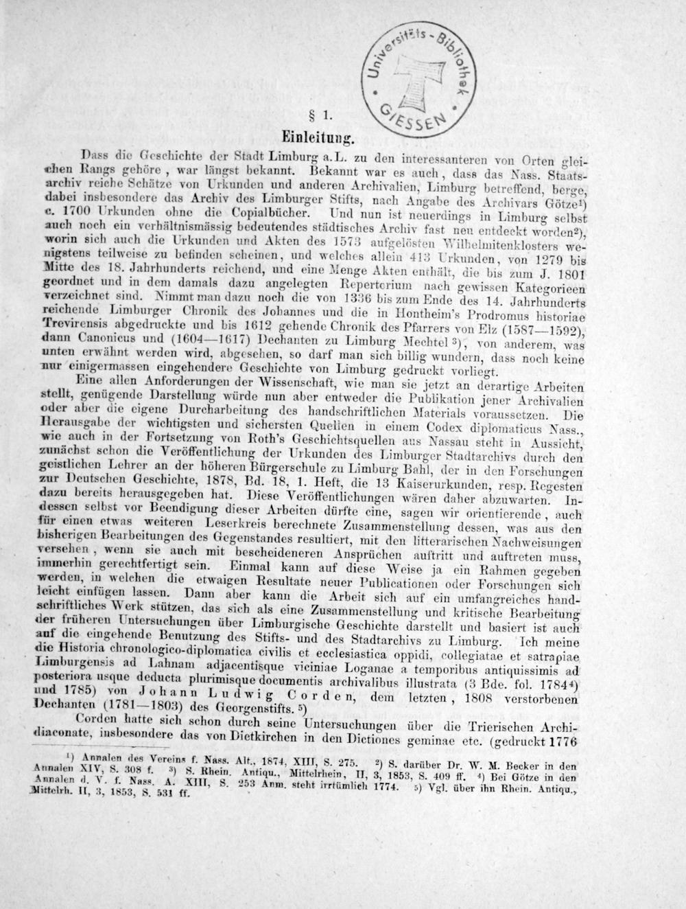 Zur Geschichte der Stadt und Herrschaft Limburg a. d. Lahn : 1. Teil