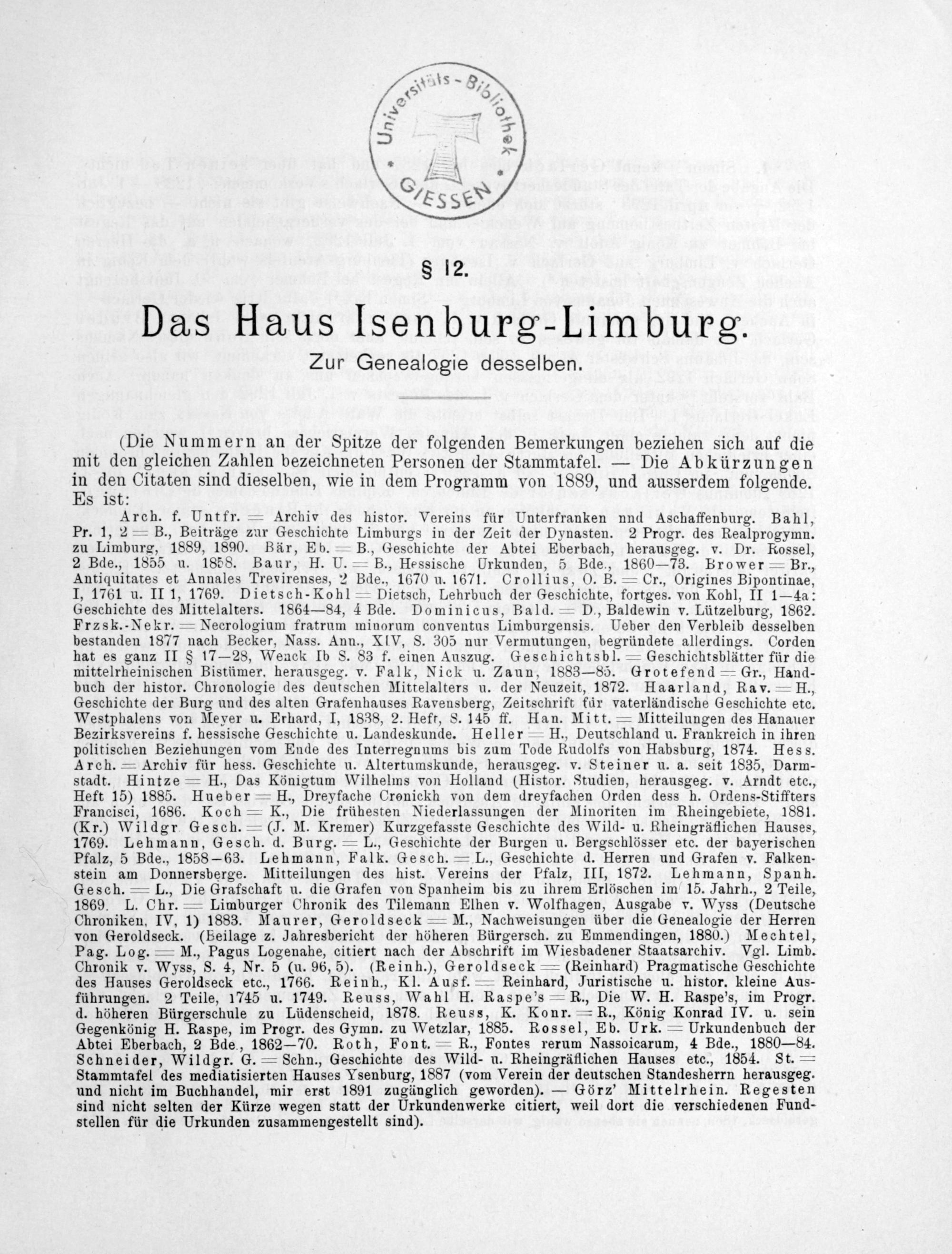 Zur Geschichte der Stadt und Herrschaft Limburg a. d. Lahn