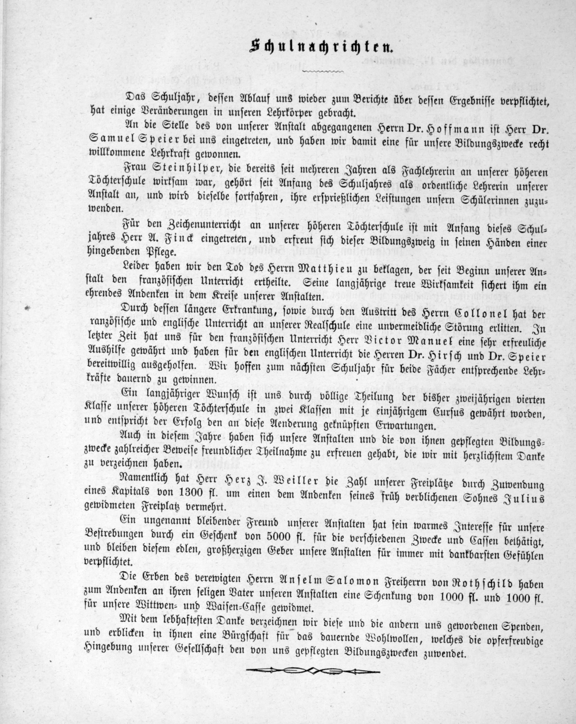 Einladungsschrift zu der öffentlichen Prüfung der Unterrichtsanstalten der Israelitischen Religions-Gesellschaft (Elementarschule, Realschule 2. O. und Höheren Töchterschule) zu Frankfurt am Main