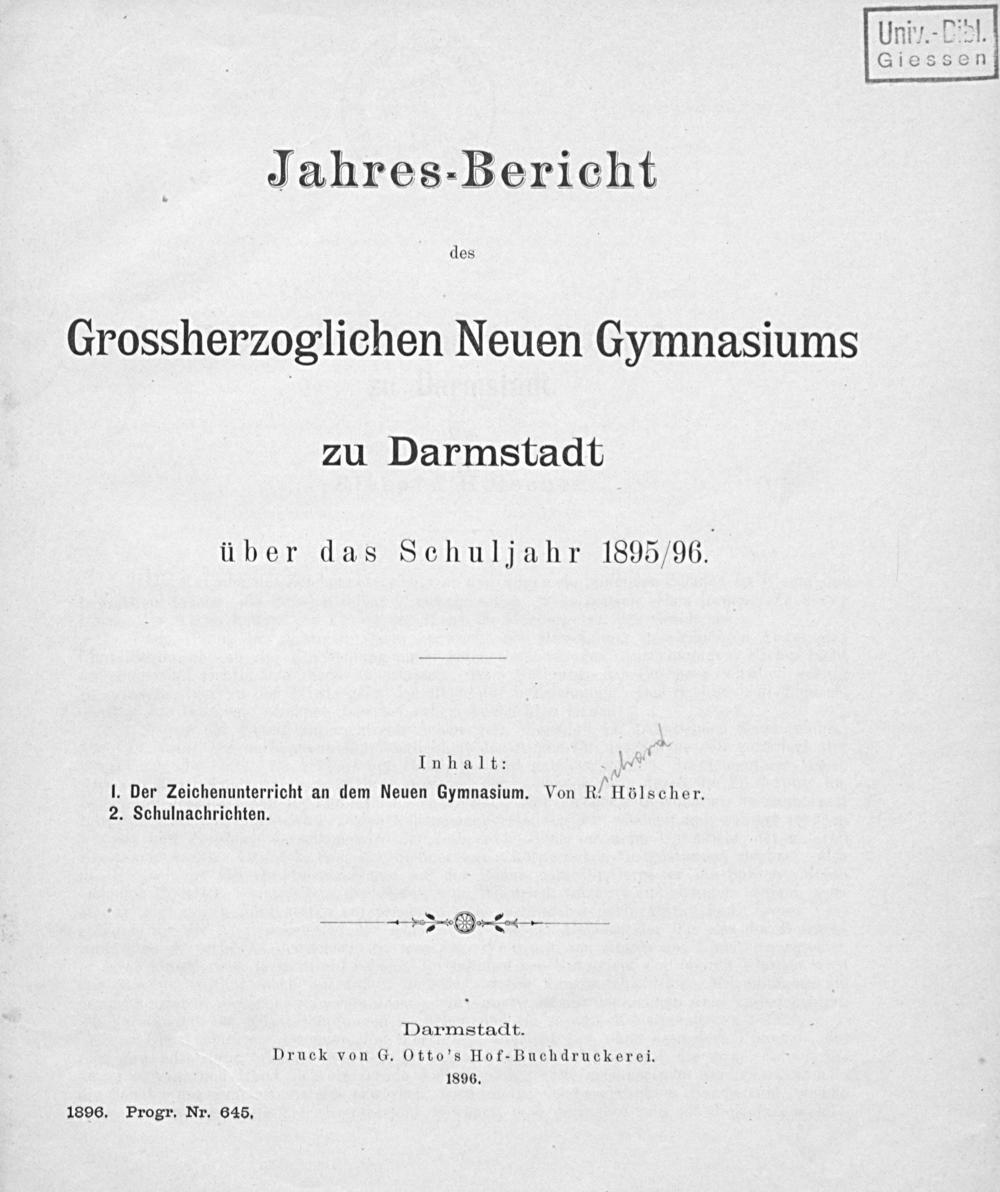 Der Zeichenunterricht an dem Neuen Gymnasium zu Darmstadt / von Richard Hölscher