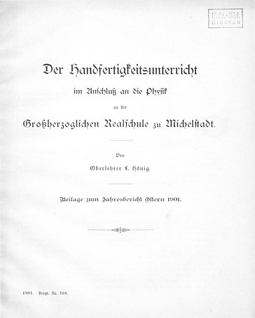 Der Handfertigkeitsunterricht im Anschluß an die Physik an der Großherzogl. Realschule zu Michelstadt