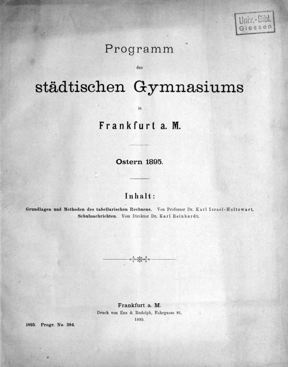 Programm des Städtischen Gymnasiums in Frankfurt a.M.