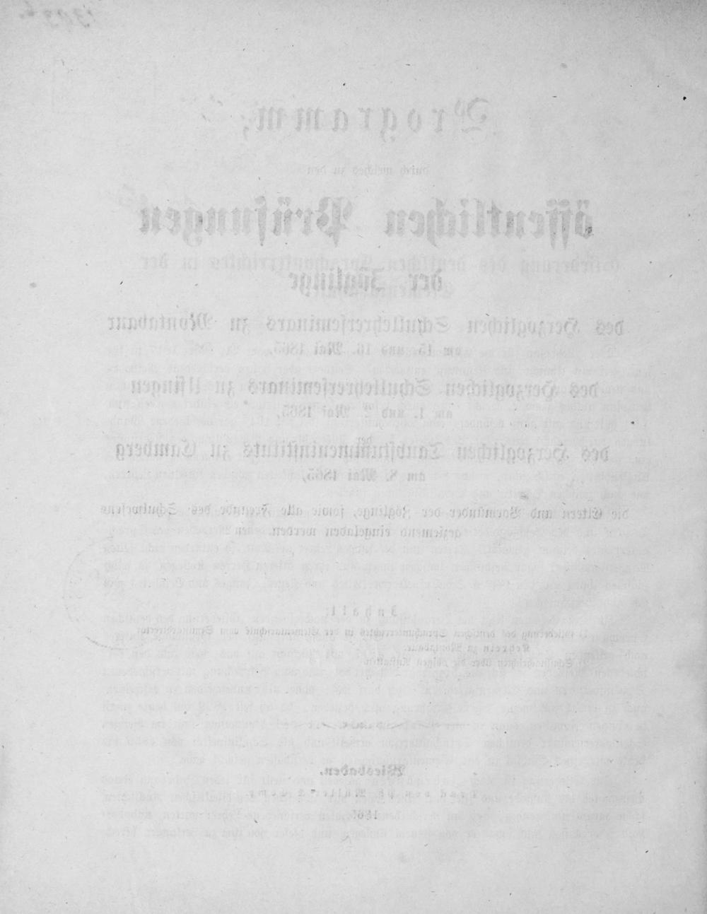 Programm, durch welches zu den öffentlichen Prüfungen der Zöglinge des Königlichen Schullehrer-Seminars zu Montabaur am ..., des Königlichen Schullehrerseminars zu Usingen am ..., des Königlichen Taubstummen-Instituts zu Camberg am ..., die Eltern und Vormünder der Zöglinge, sowie alle Freunde des Schulwesens geziemend eingeladen werden