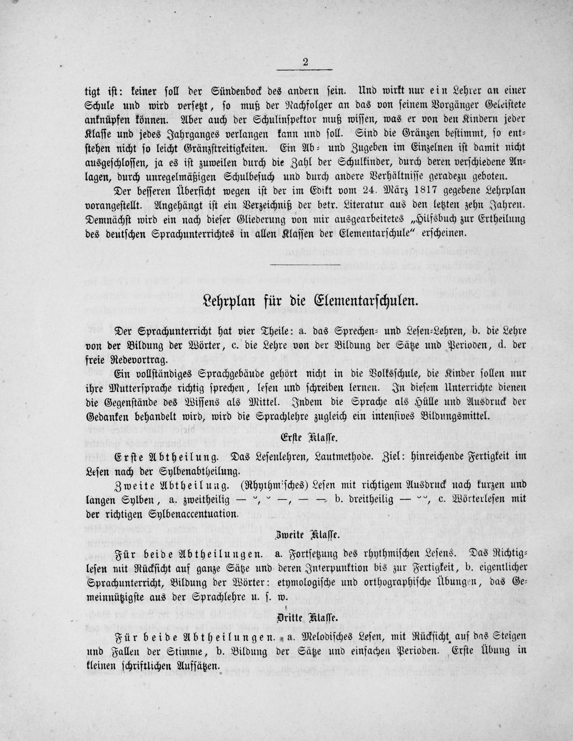 Gliederung des deutschen Sprachunterrichtes in der Elementarschule