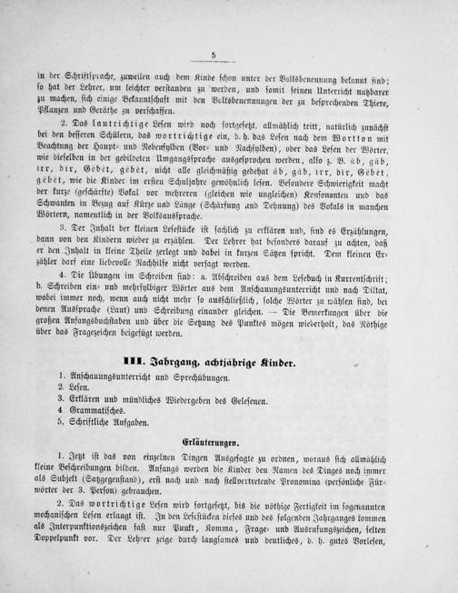 Gliederung des deutschen Sprachunterrichtes in der Elementarschule