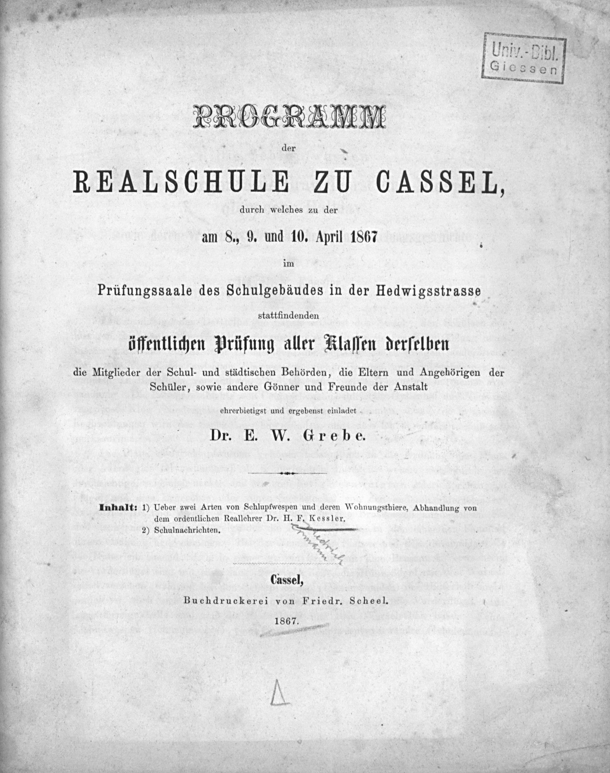 Programm der Realschule zu Cassel für das Schuljahr ...