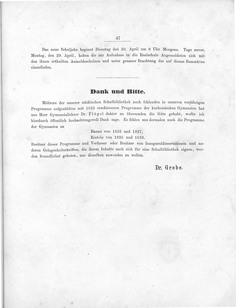 Programm der Realschule zu Cassel für das Schuljahr ...