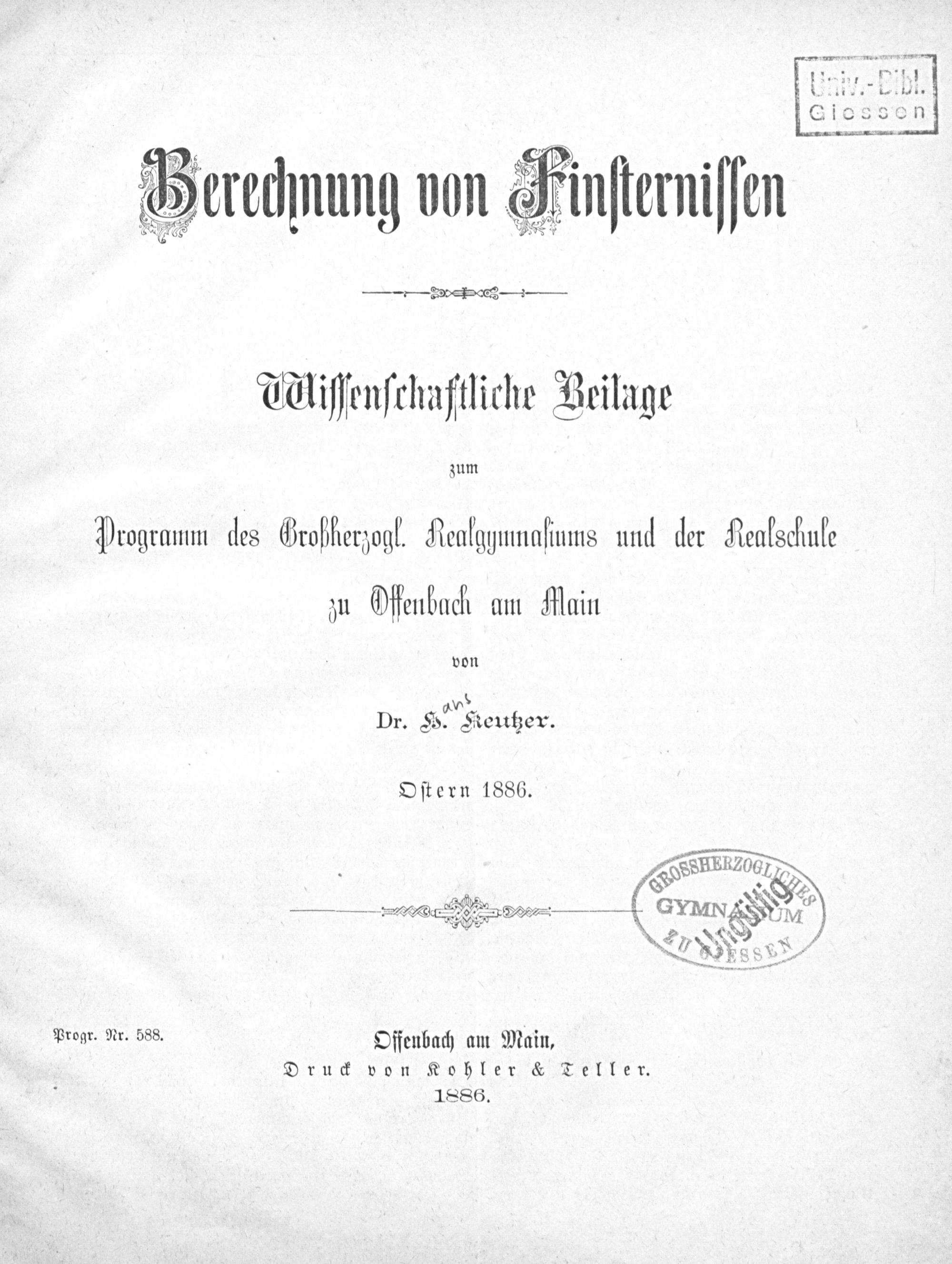 Programm des Grossherzoglichen Realgymnasiums und der Realschule zu Offenbach a. M.