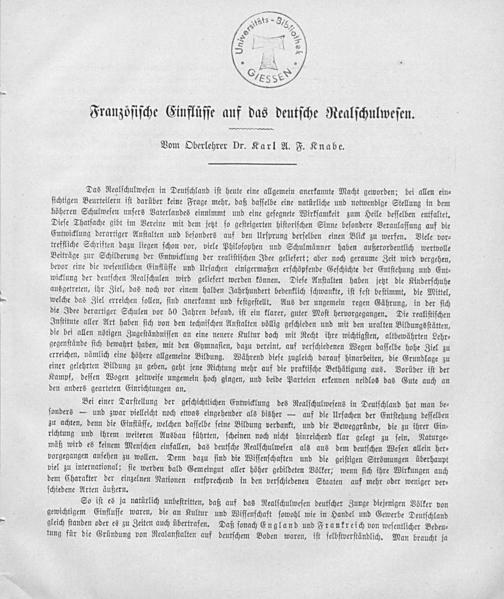 Französische Einflüsse auf das deutsche Realschulwesen / von A. F. Knabe