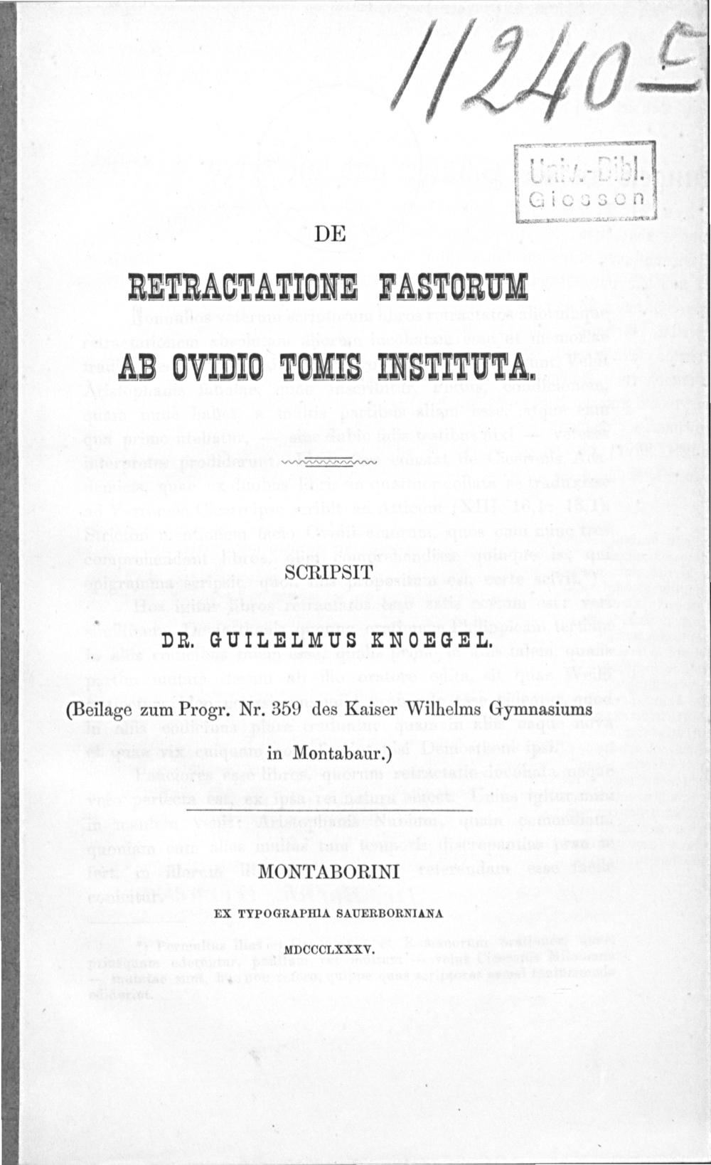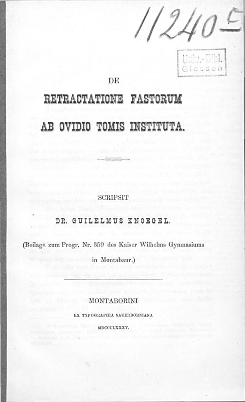 De retractatione fastorum ab Ovidio tomis instituta / scripsit Guilelmus Knoegel