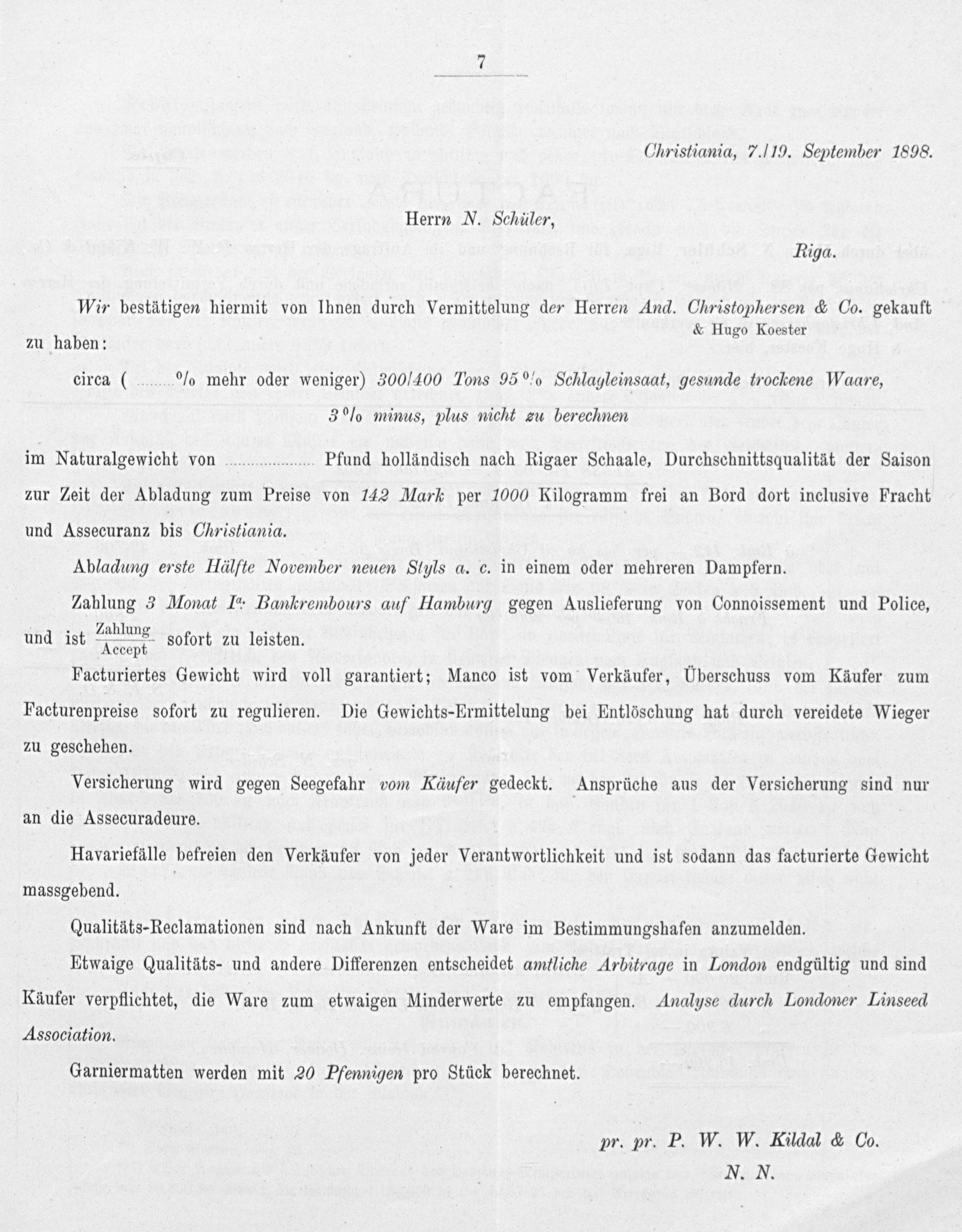 a) Einige Usancen im internationalen Handel mit Ölsaaten. b) Über die Abstimmung der Konti-Korrenti