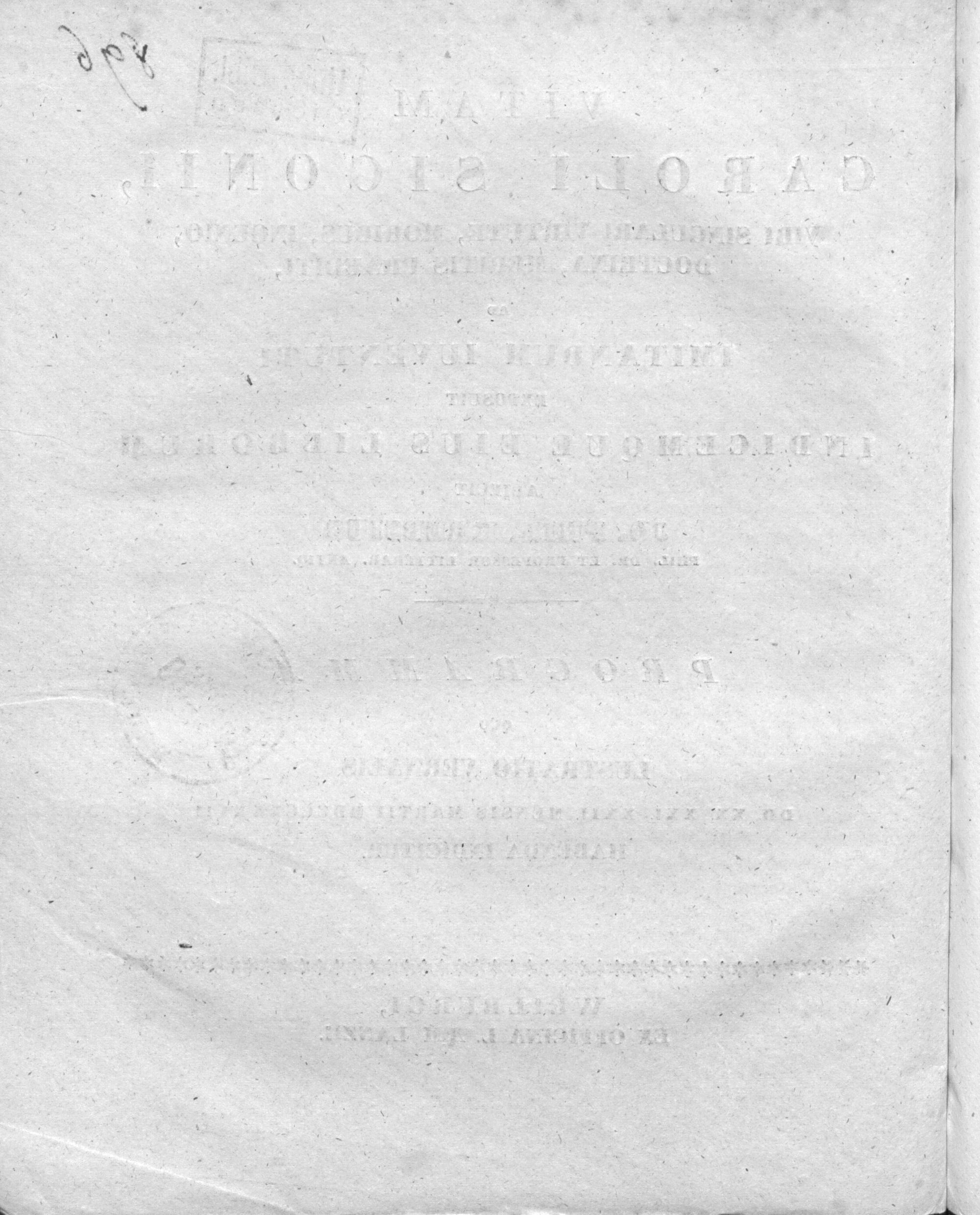 Vitam Caroli Sigonii : viri singulari virtute, moribus, ingenio, doctrina, meritis praediti, ad imitandum iuventuti exposuit indicemque eius librorum / adiecit Jo. Phil. Krebsius