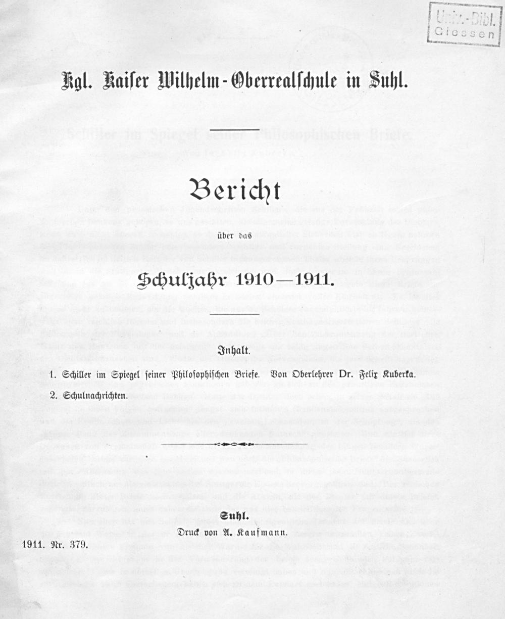 Schiller im Spiegel seiner Philosophischen Briefe / von Felix Kuberka
