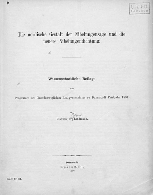 Die nordische Gestalt der Nibelungensage und die neuere Nibelungendichtung / von Landmann