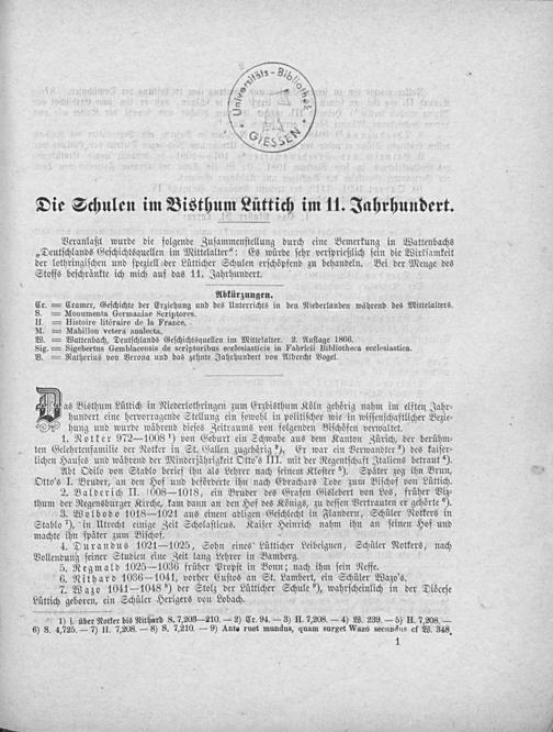 Die Schulen im Bistum Lüttich im 11. Jahrhundert / vom ... Dute