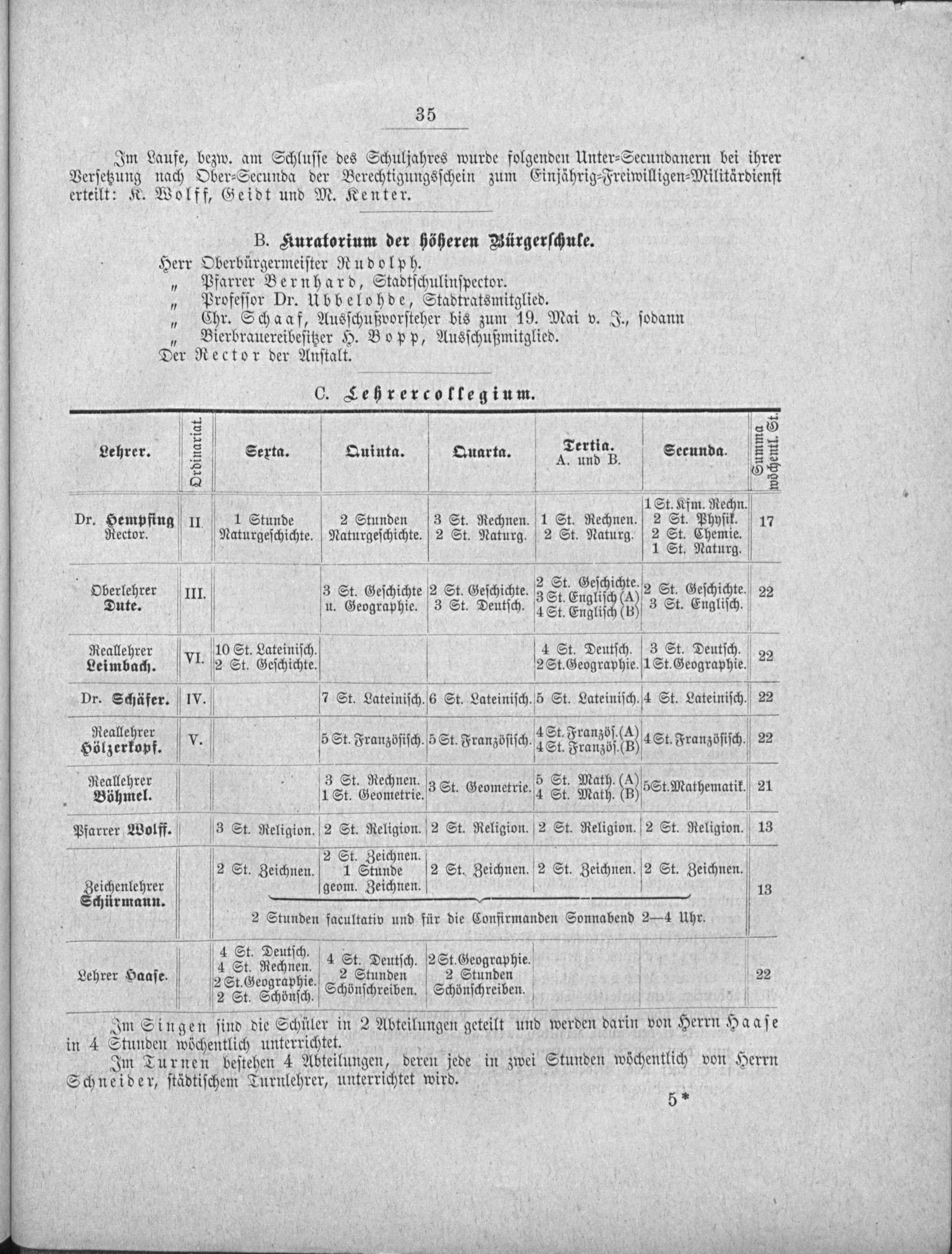 Programm des Realprogymnasiums (Realgymnasium ohne Prima) in Marburg