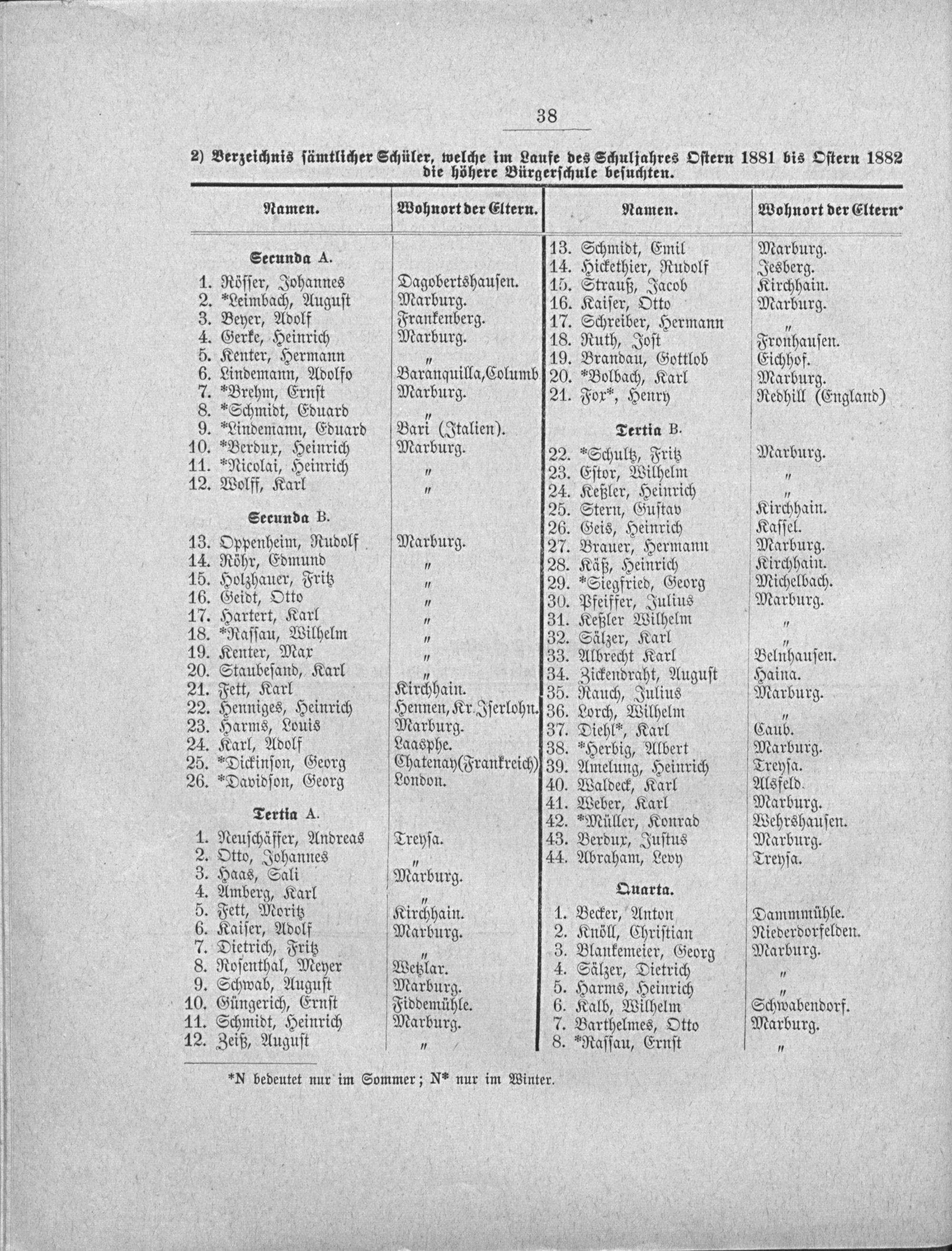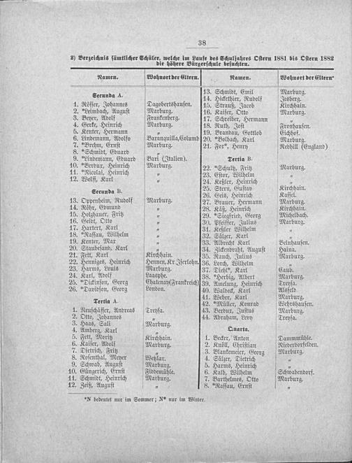Programm des Realprogymnasiums (Realgymnasium ohne Prima) in Marburg