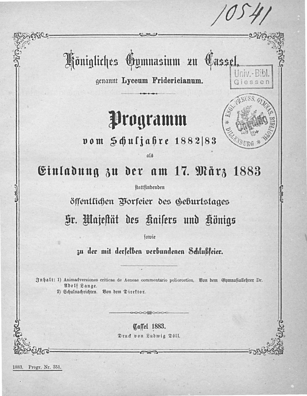 Animadversiones criticae de Aeneae commentario poliorcetico / von Adolf Lange