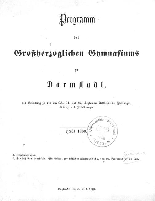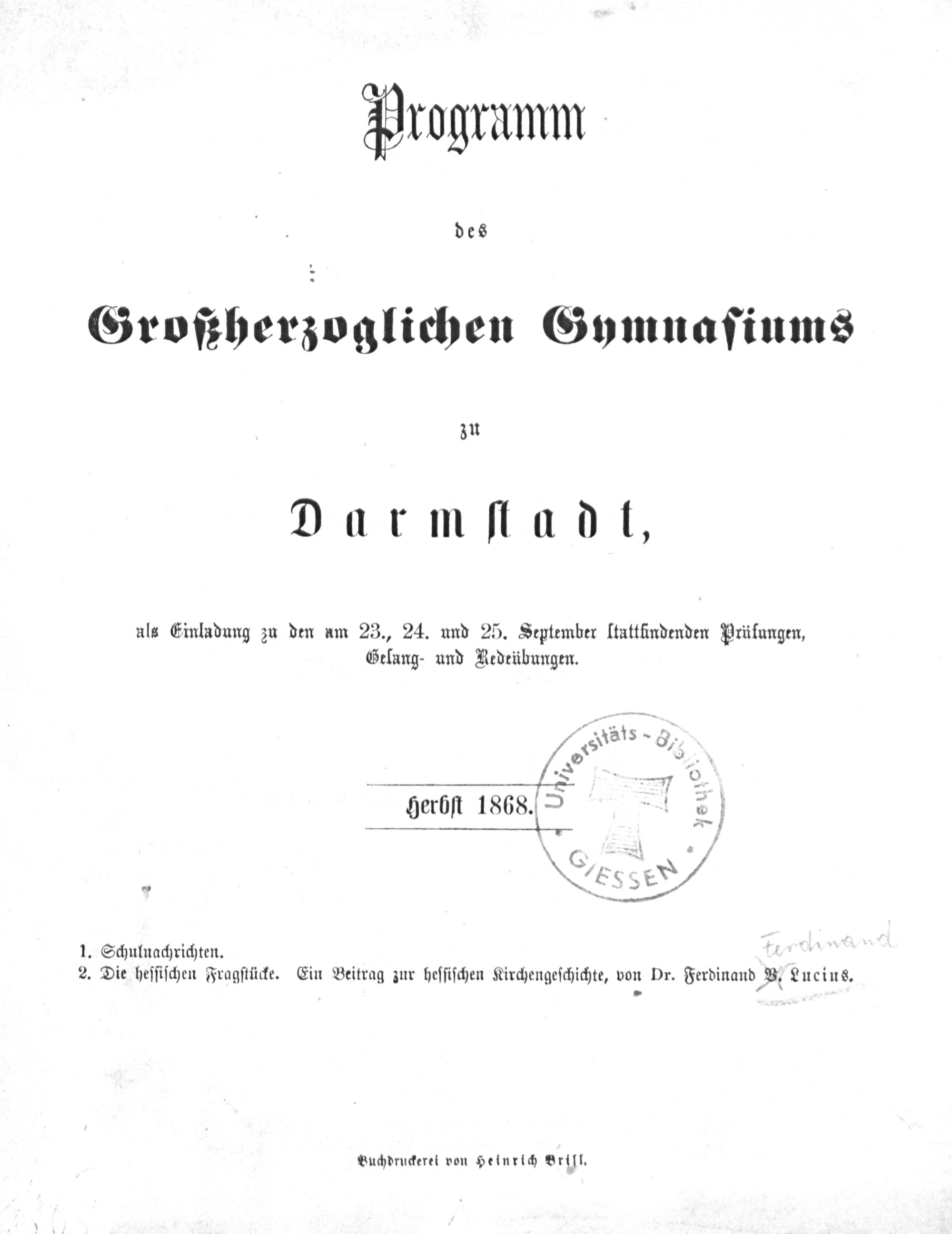 Programm des Großherzoglichen Gymnasiums zu Darmstadt