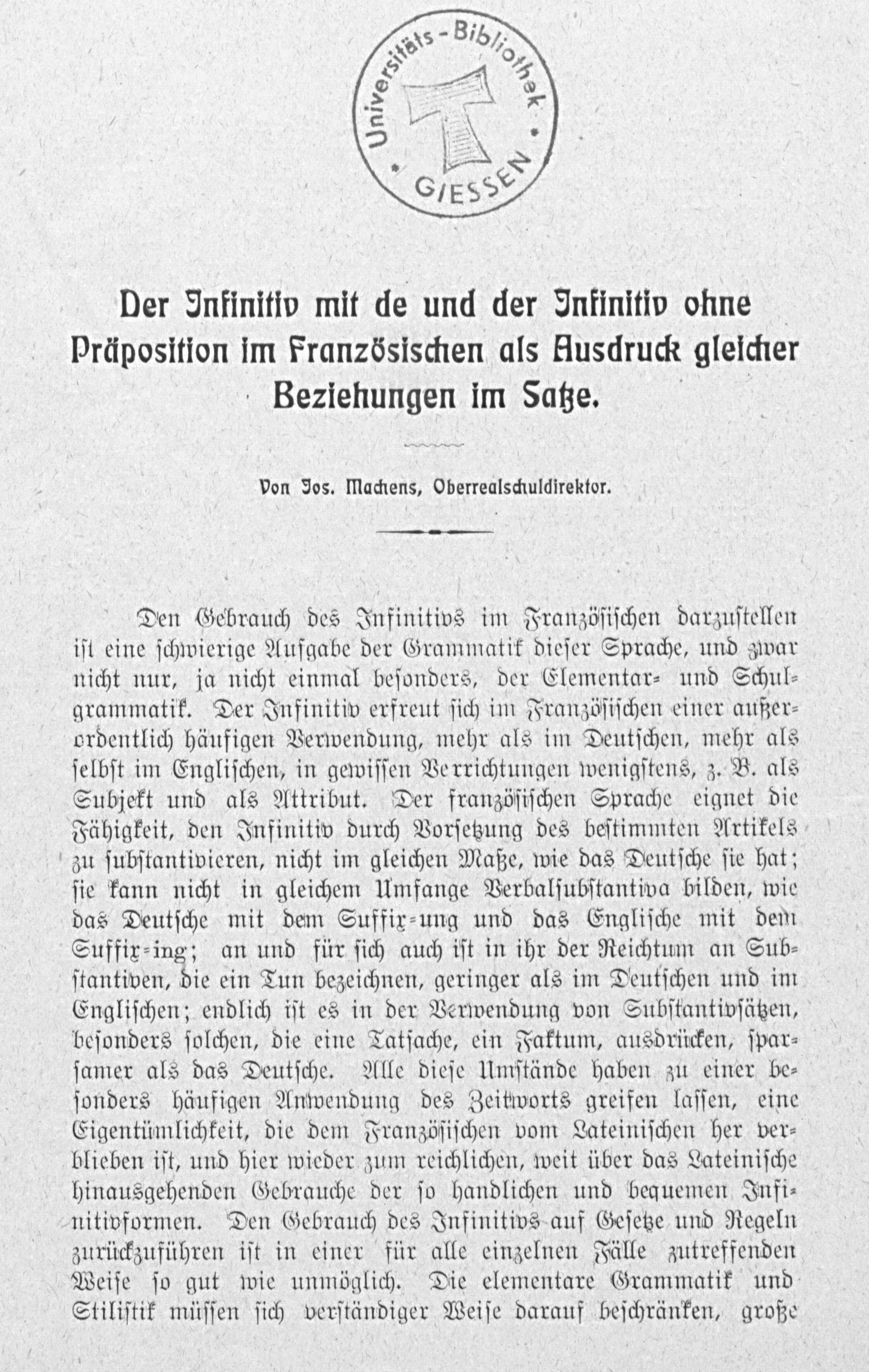 Der Infinitiv mit de und der Infinitiv ohne Präposition im Französischen als Ausdruck gleicher Beziehungen im Satze