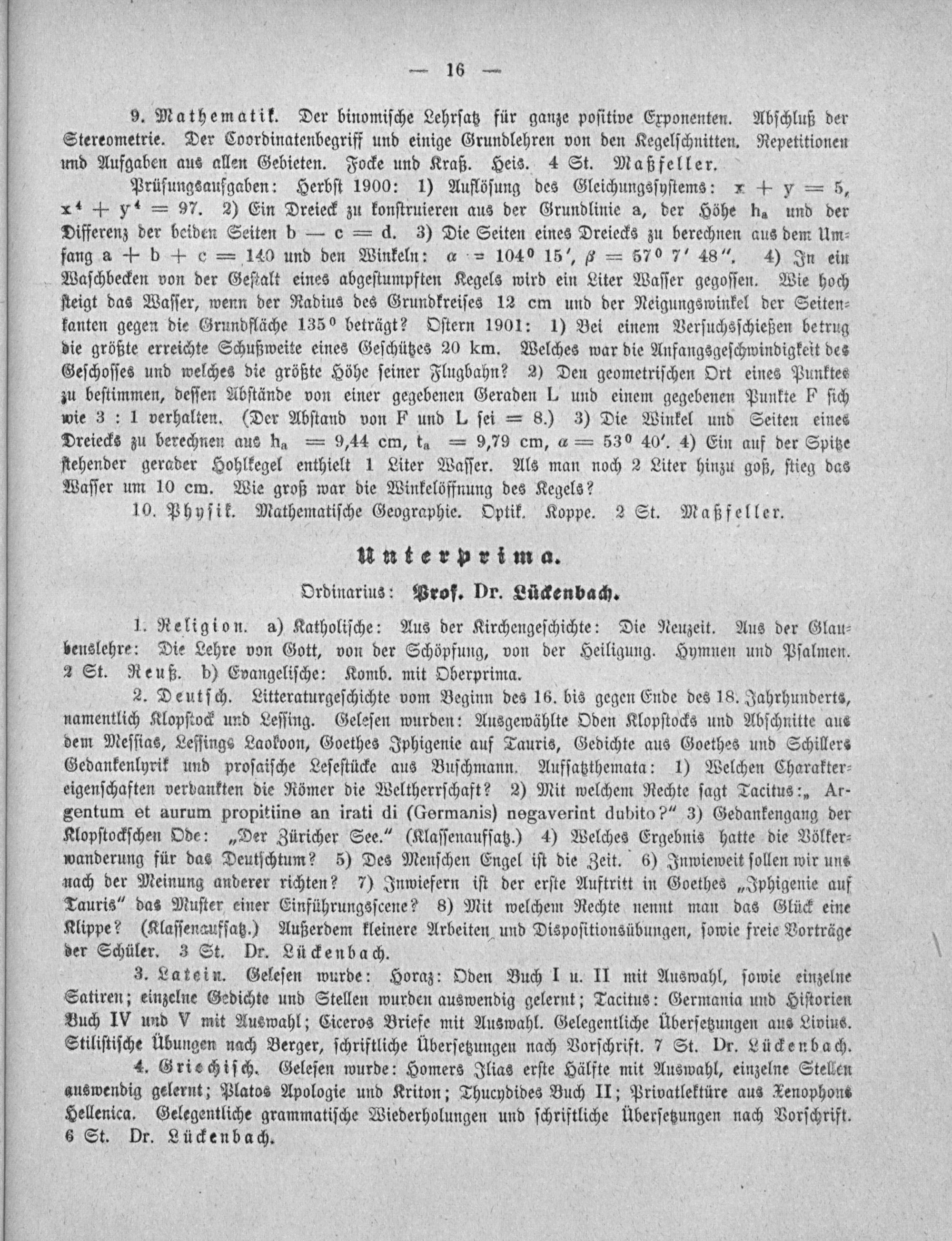 Einige mathematische Aufgaben aus dem Unterrichtsstoffe der Obersekunda und Prima des Gymnasiums : 1. Teil