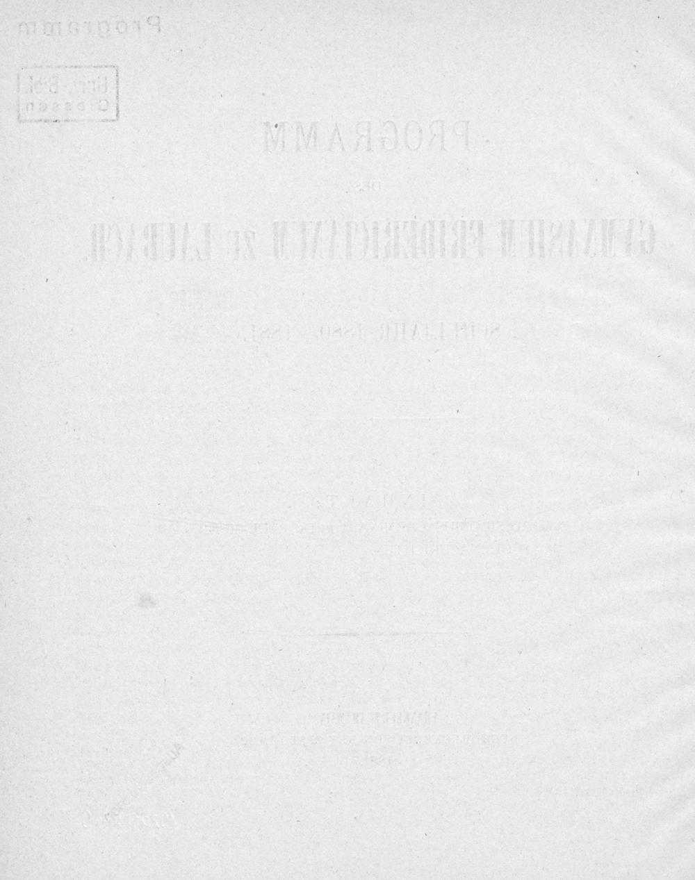Programm des Großherzoglichen Gymnasiums Fridericianum zu Laubach
