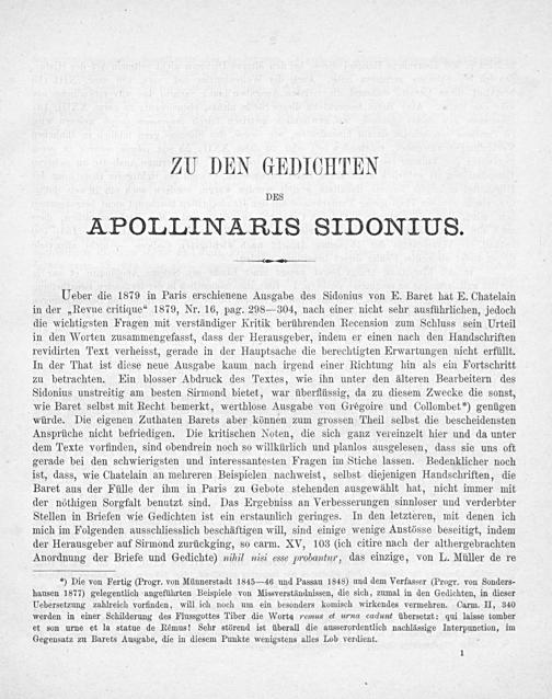 Zu Sidonius' Carmina / von Paul Mohr