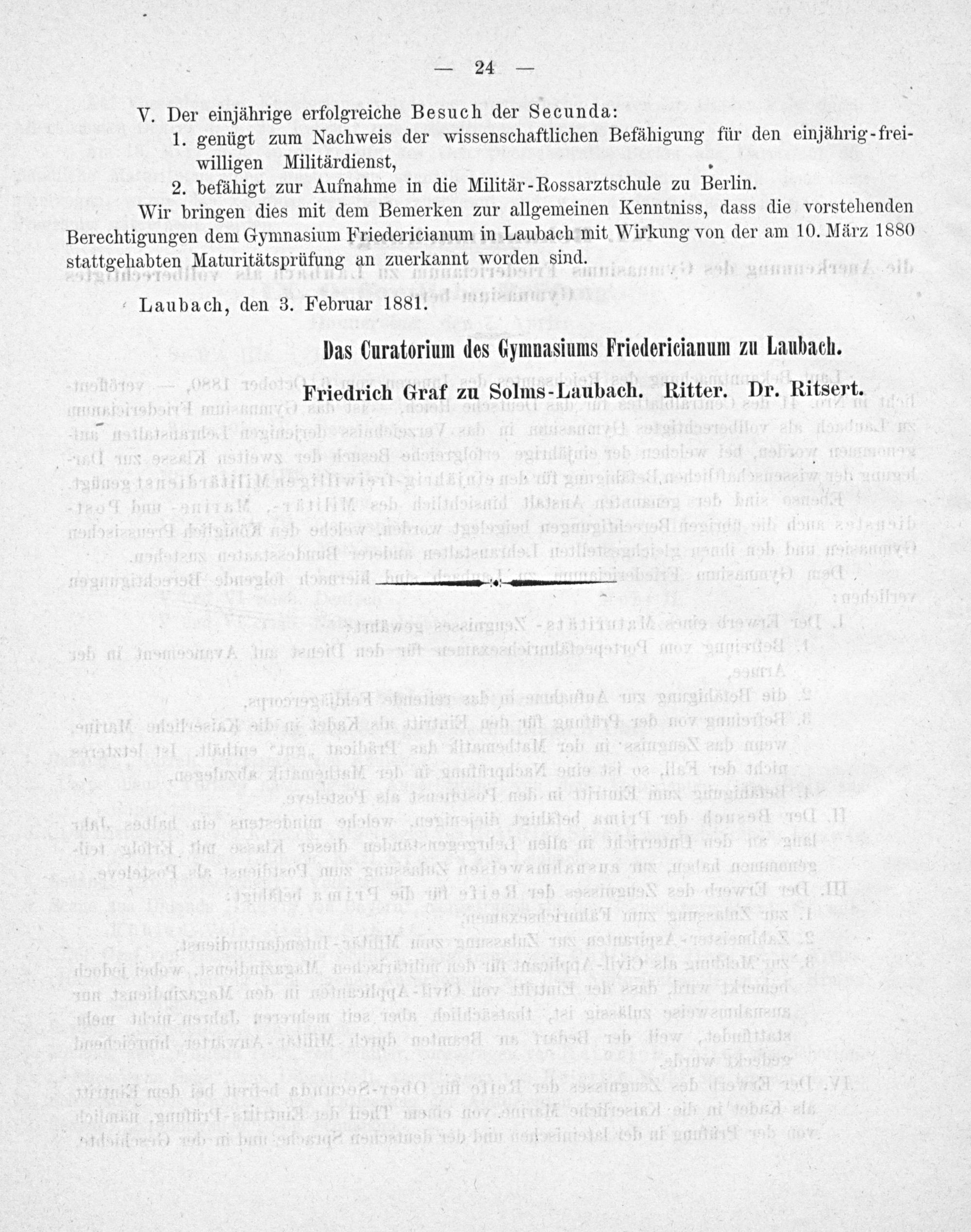 Programm des Großherzoglichen Gymnasiums Fridericianum zu Laubach